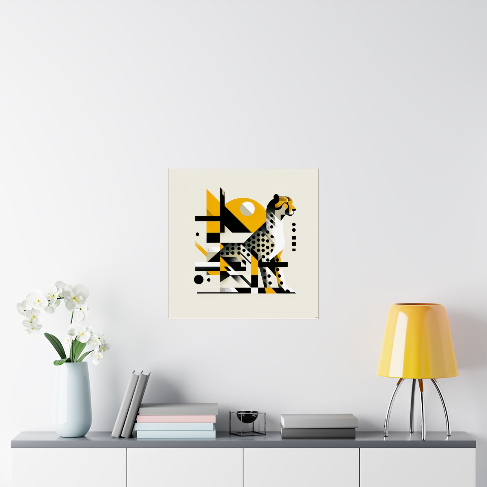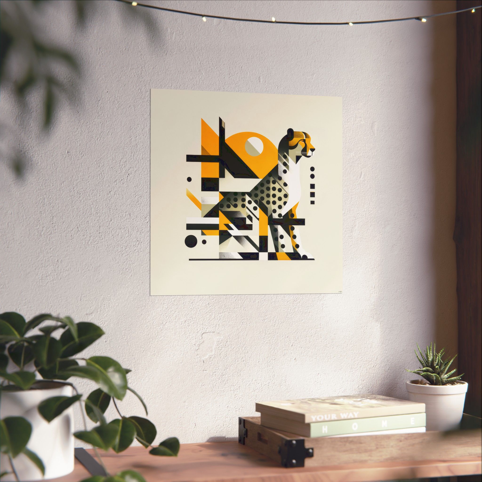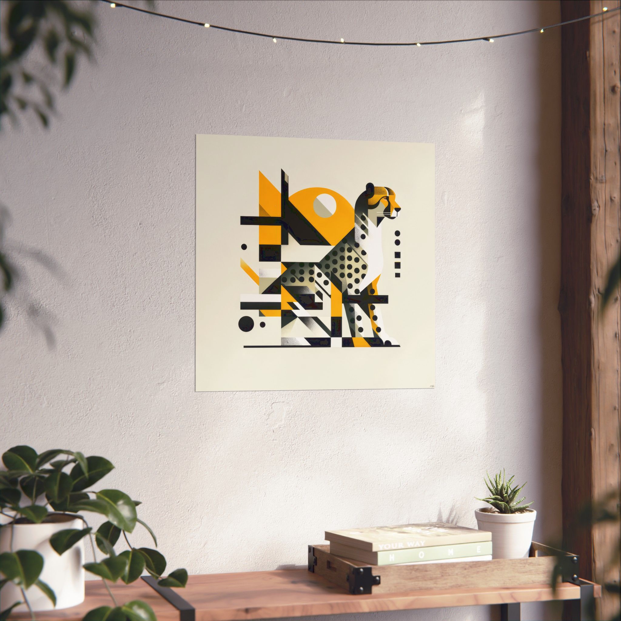 Embrace the essence of nature with this Cheetah Minimalist Wall Art Poster. The abstract design and geometric shapes give a modern, artistic vibe to any space. Perfect for nature lovers and art enthusiasts, this poster is ideal for adding a touch of sophistication to any room. Relevant for home decor, art lovers, and nature enthusiasts.