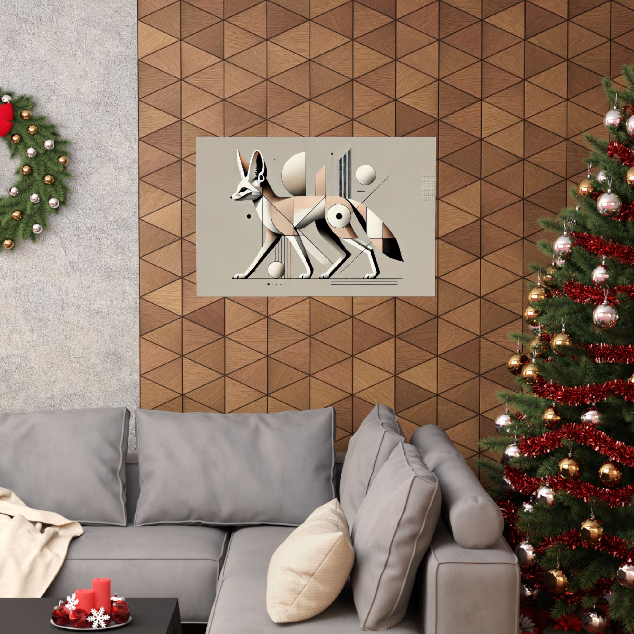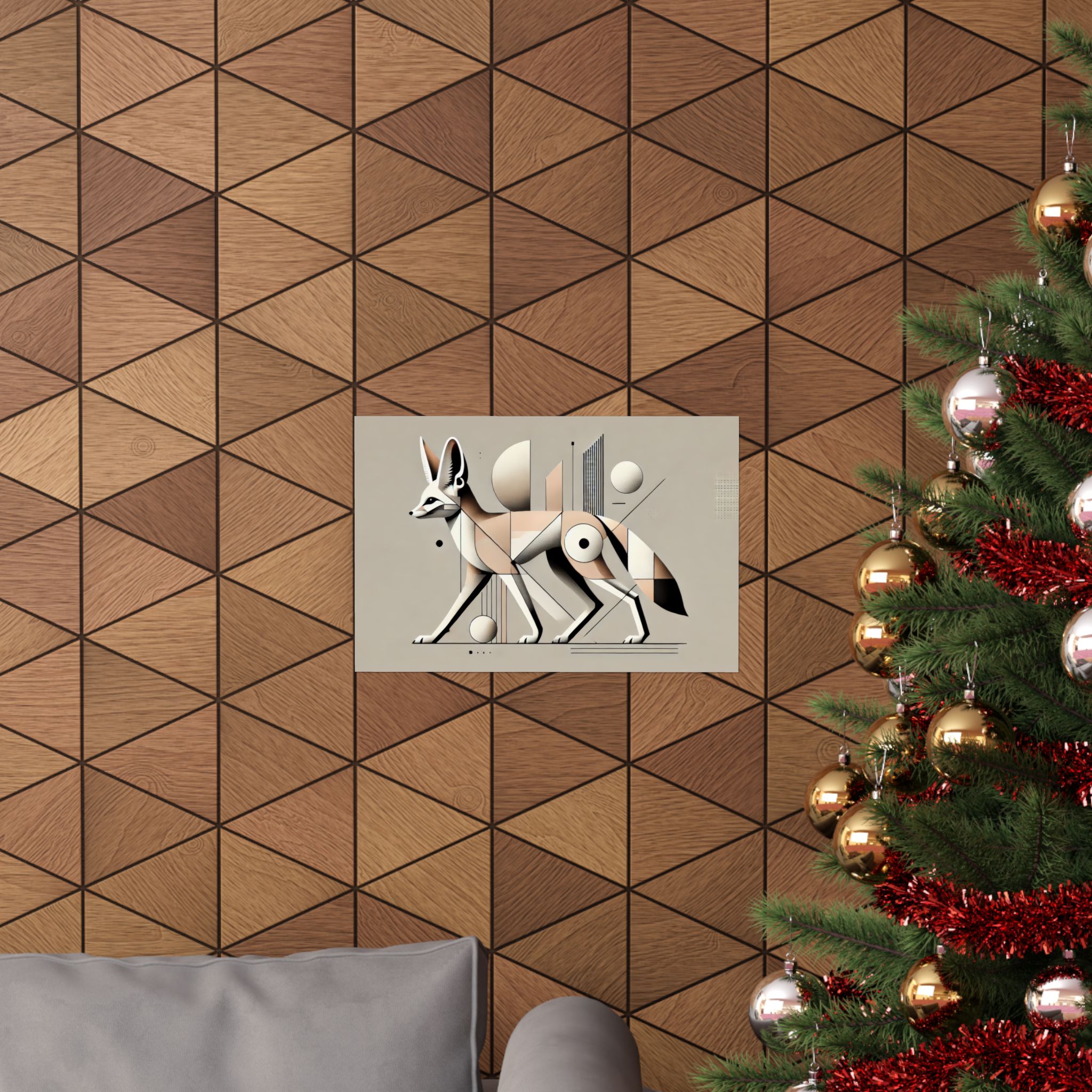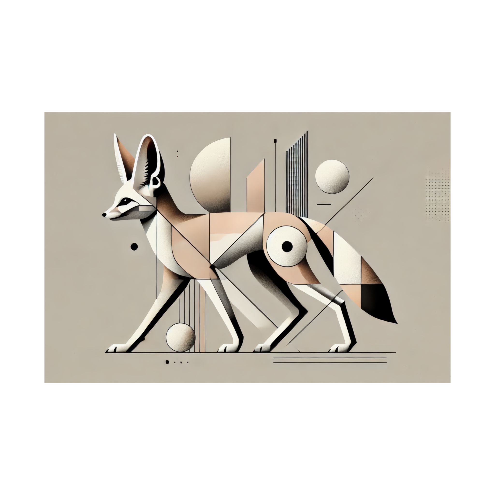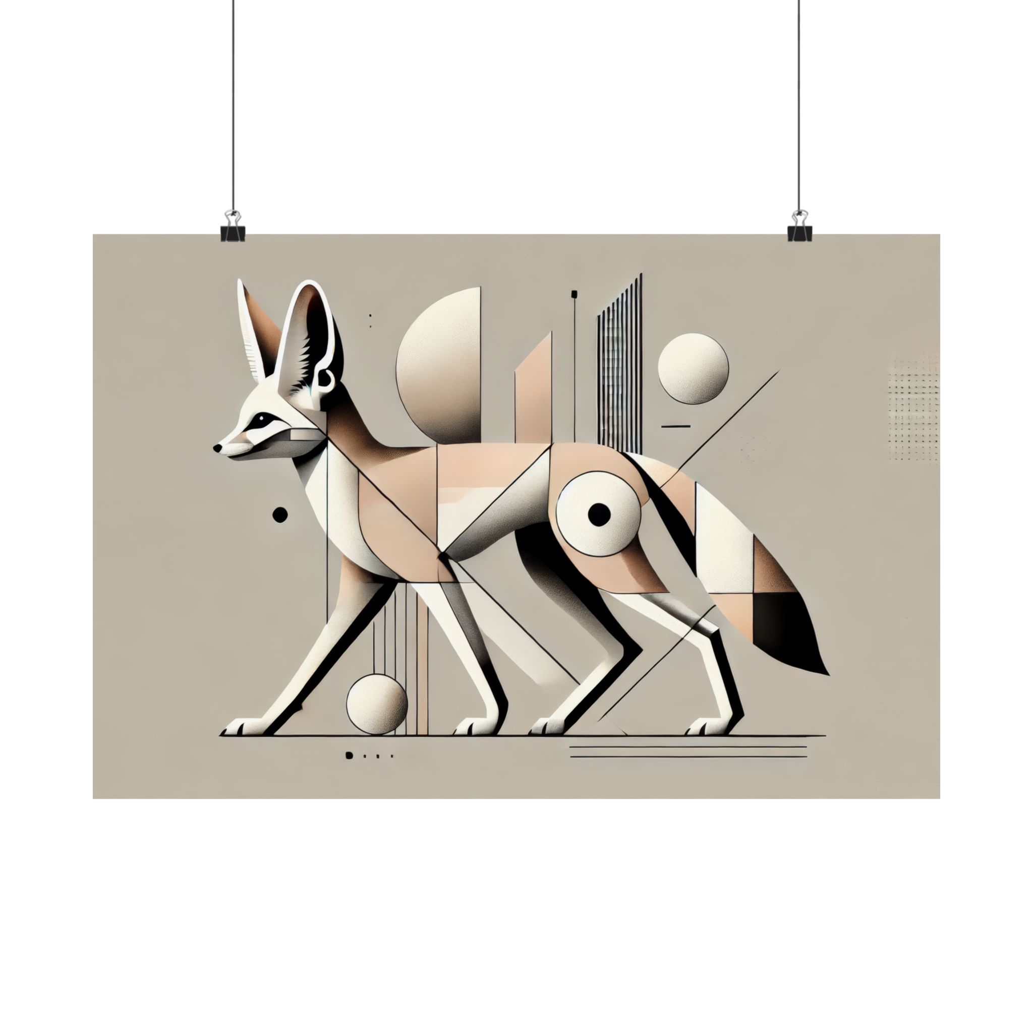 Geometric Fennec Fox Abstract Poster, Minimalist Wall Art, Cubist Bauhaus Print, Matte Horizontal Artwork, Big Cat Decor, Unique Animal Art,