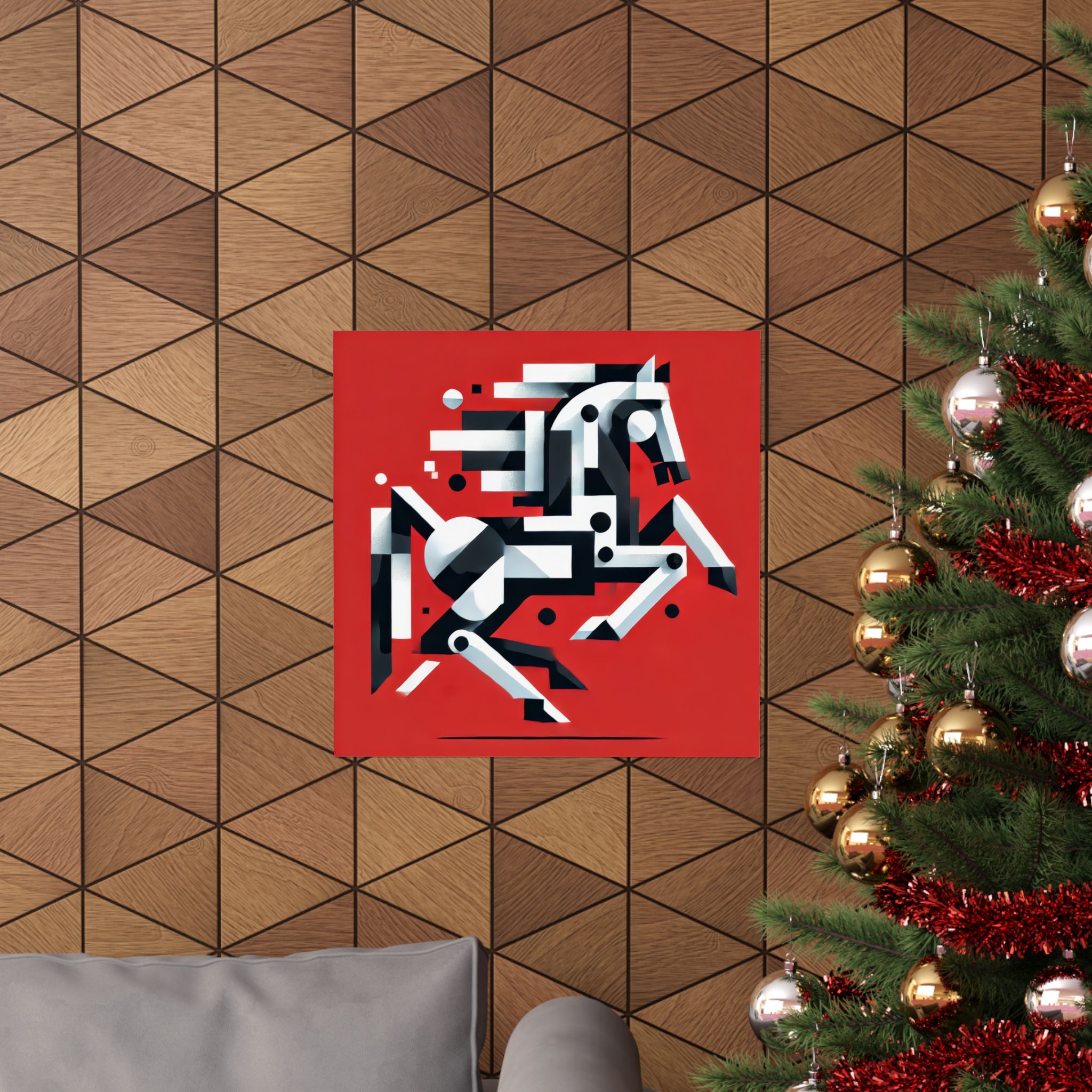Brutalist Red Horse Geometric Shapes Abstract Minimalist Wall Art Poster brings a modern and artistic vibe to any room. Perfect for art enthusiasts and those who appreciate minimalist design. Ideal for decorating homes, offices, and studios. Great for birthdays, housewarmings, and art lovers.