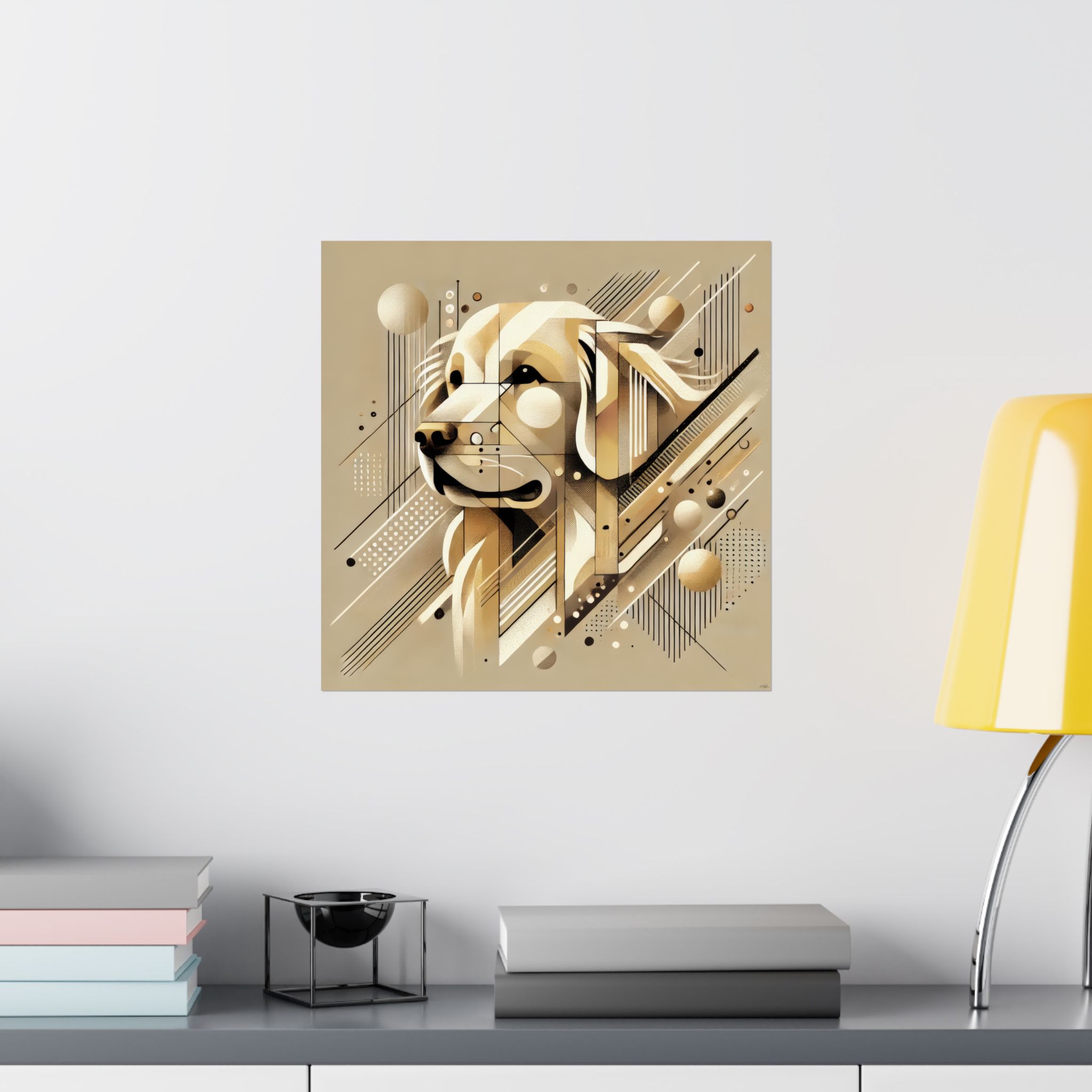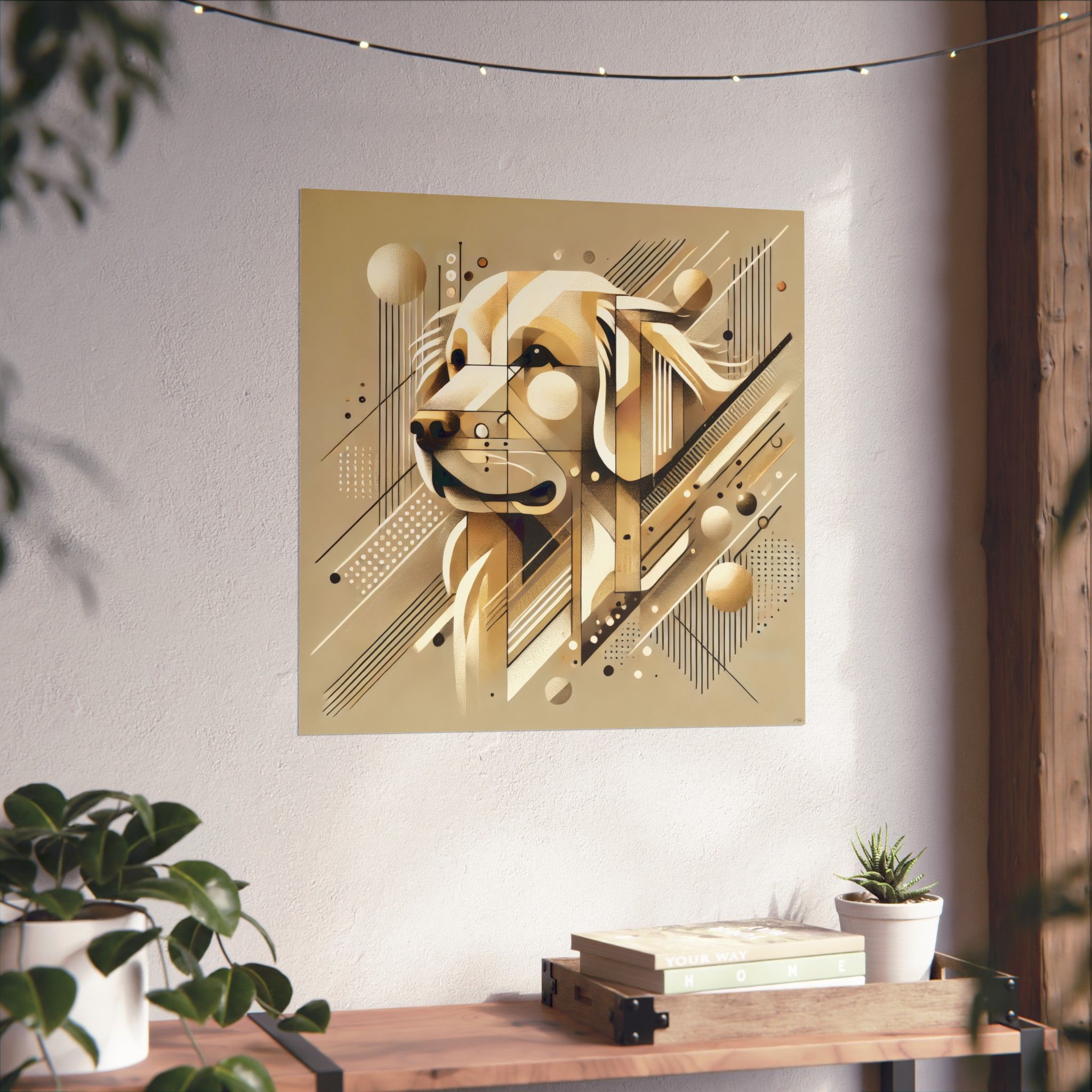 Warm, modern, and quietly playful — this matte vertical poster brings a stylized golden retriever into your space with clean geometric lines and a soft, sandy palette. The archival museum-grade paper and giclée printing keep every subtle gradient and crisp edge vivid for years, while the matte finish removes glare and gives the piece a tactile, gallery-quality feel. Hang it in a living room, home office, or nursery to add a thoughtful, contemporary nod to dog lovers and design-minded households. Its range of sizes makes it easy to frame or display as a standalone focal point or as part of a curated wall grouping.