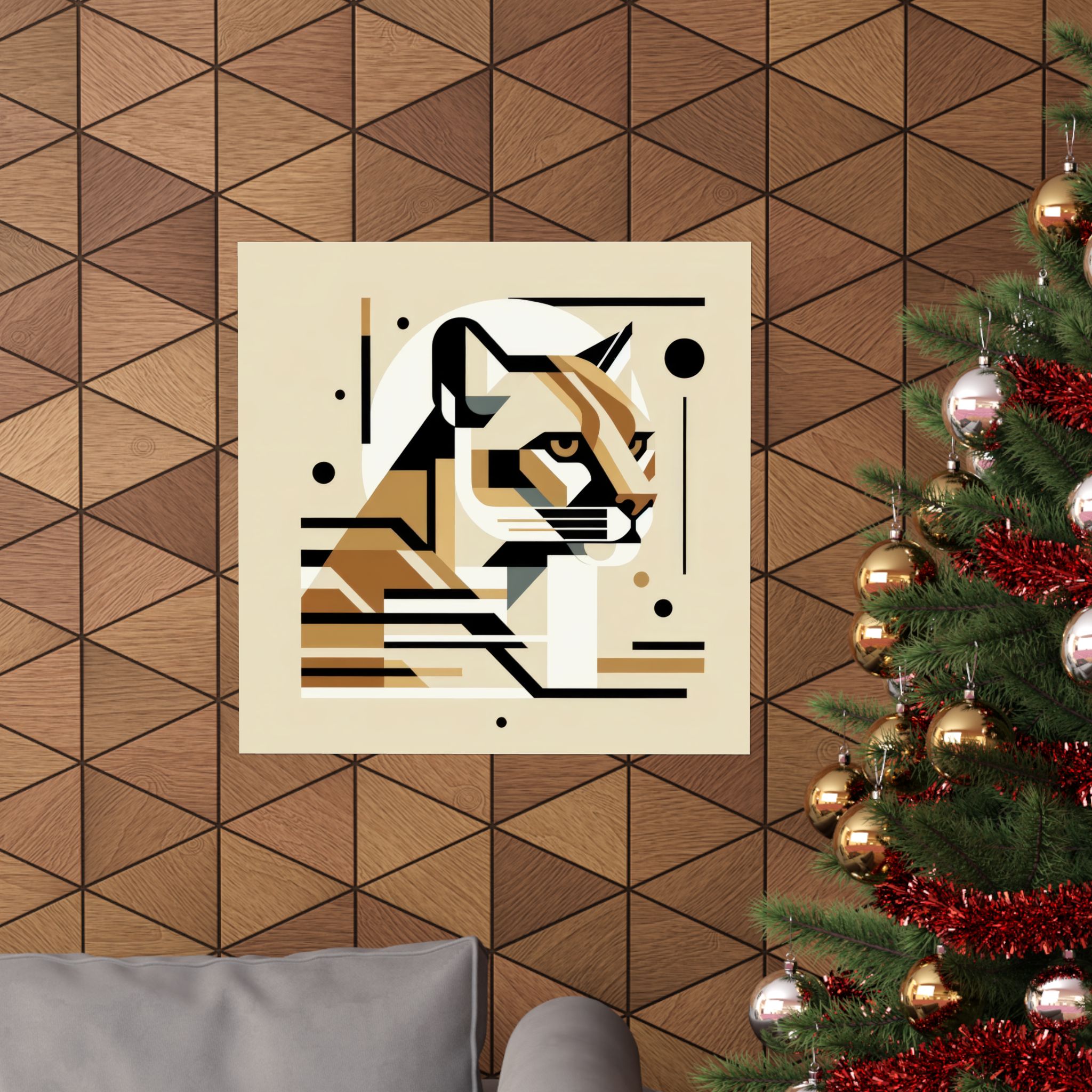 North American Puma Abstract Minimalist Bauhaus Art Wall Poster Animal Big Cat