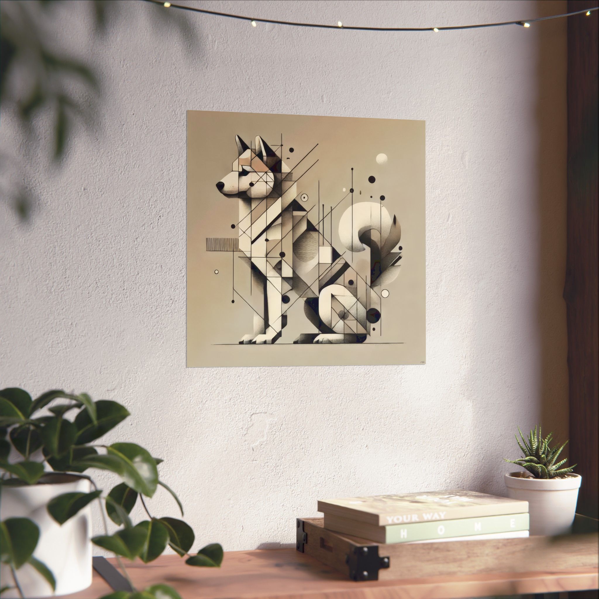 This matte vertical poster brings a quiet, modern energy to any wall. The geometric husky design combines soft neutrals and precise lines to feel both architectural and warm. Hung in a hallway, studio, or living room, it reads like a thoughtful study — a calm companion that rewards a closer look. The matte surface reduces glare so the subtleties in shading and composition remain visible from different angles. It’s for people who collect design-led objects and want artwork that starts conversations without shouting. Fits naturally into minimalist, Scandi, or contemporary interiors and pairs well with wood frames or floating mounts.