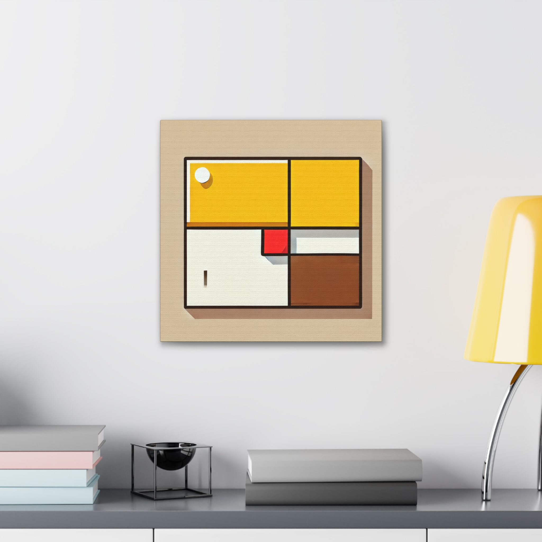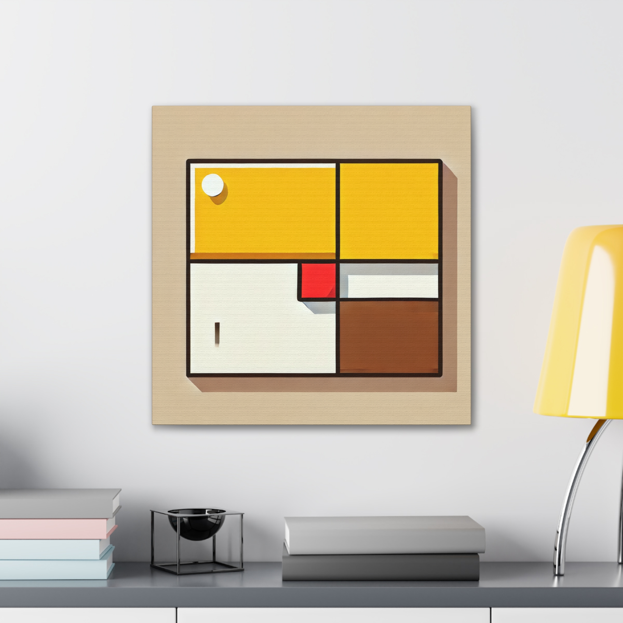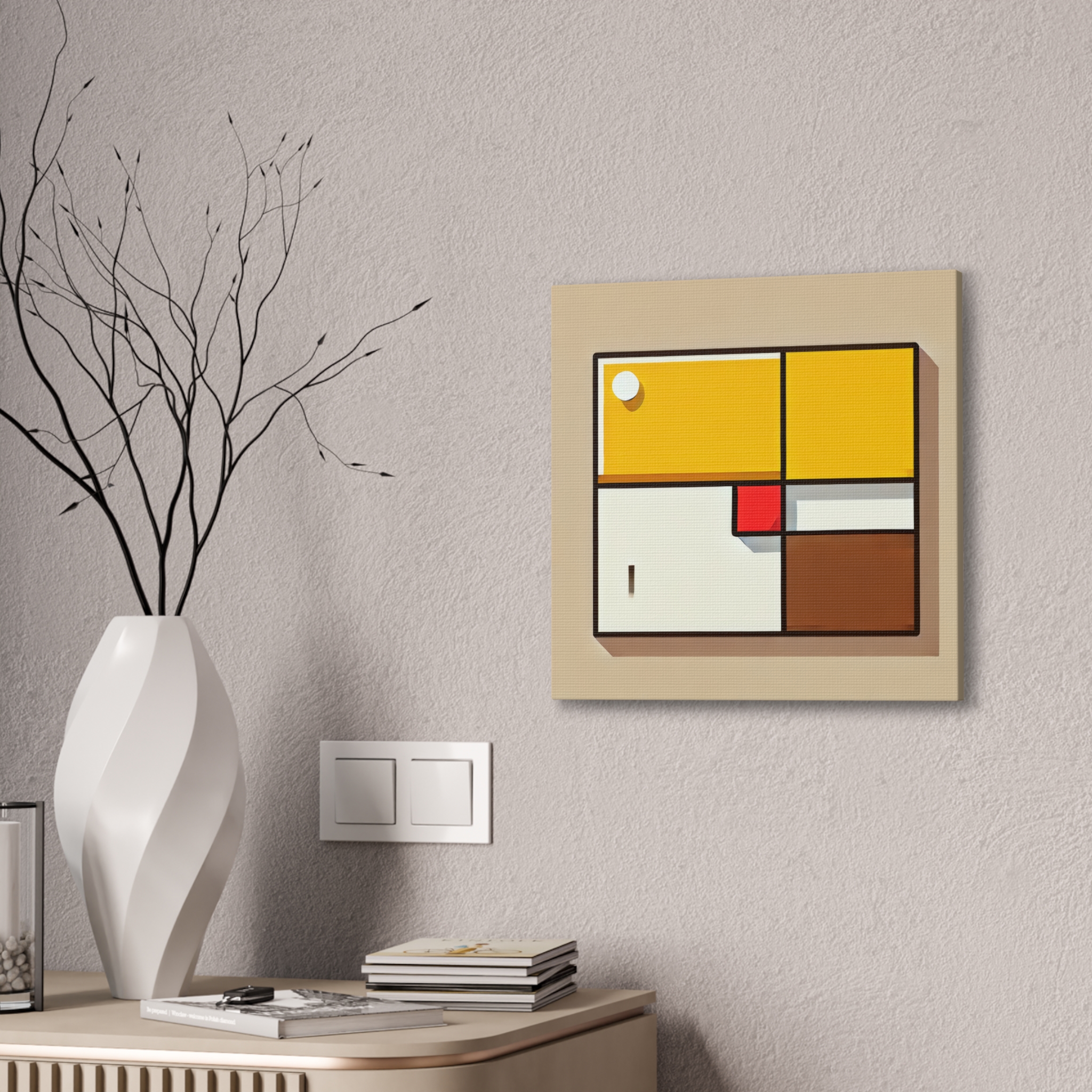 A bold stretched canvas designed to suit a wide range of interiors. Printed on heavy-weight polyester canvas and mounted to a sturdy pinewood frame, the piece sits just off the wall with a clean, gallery-ready presence. The balanced composition and modern visual language create a calm yet confident mood, making it well suited to bedrooms,…