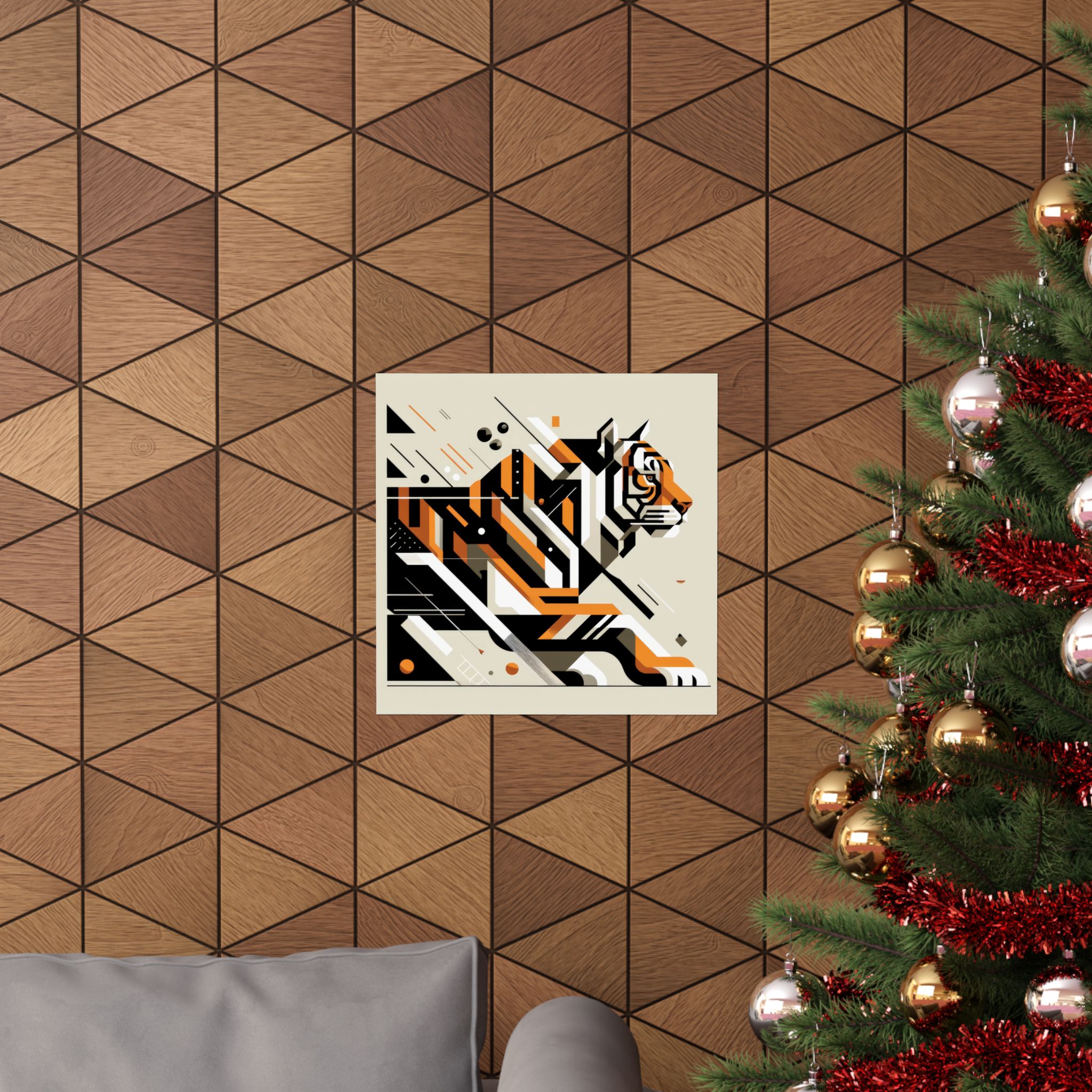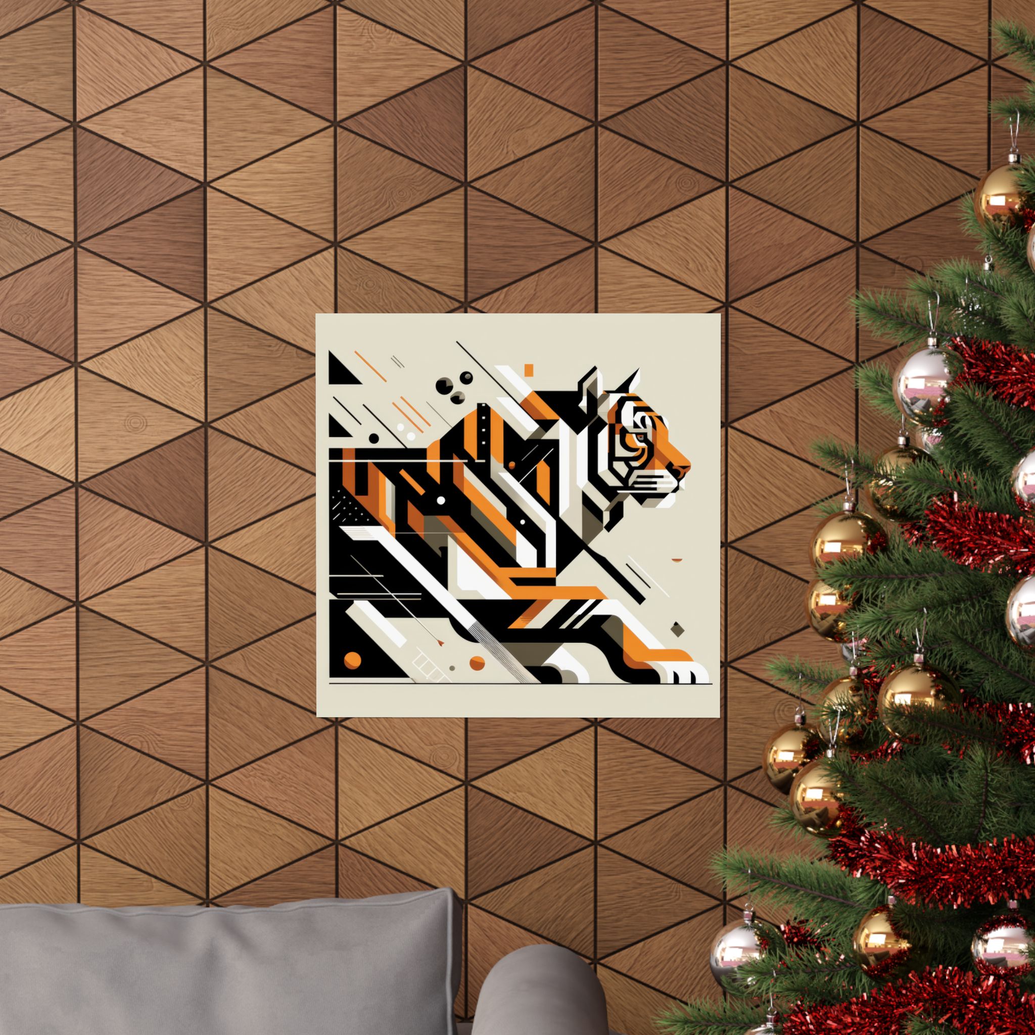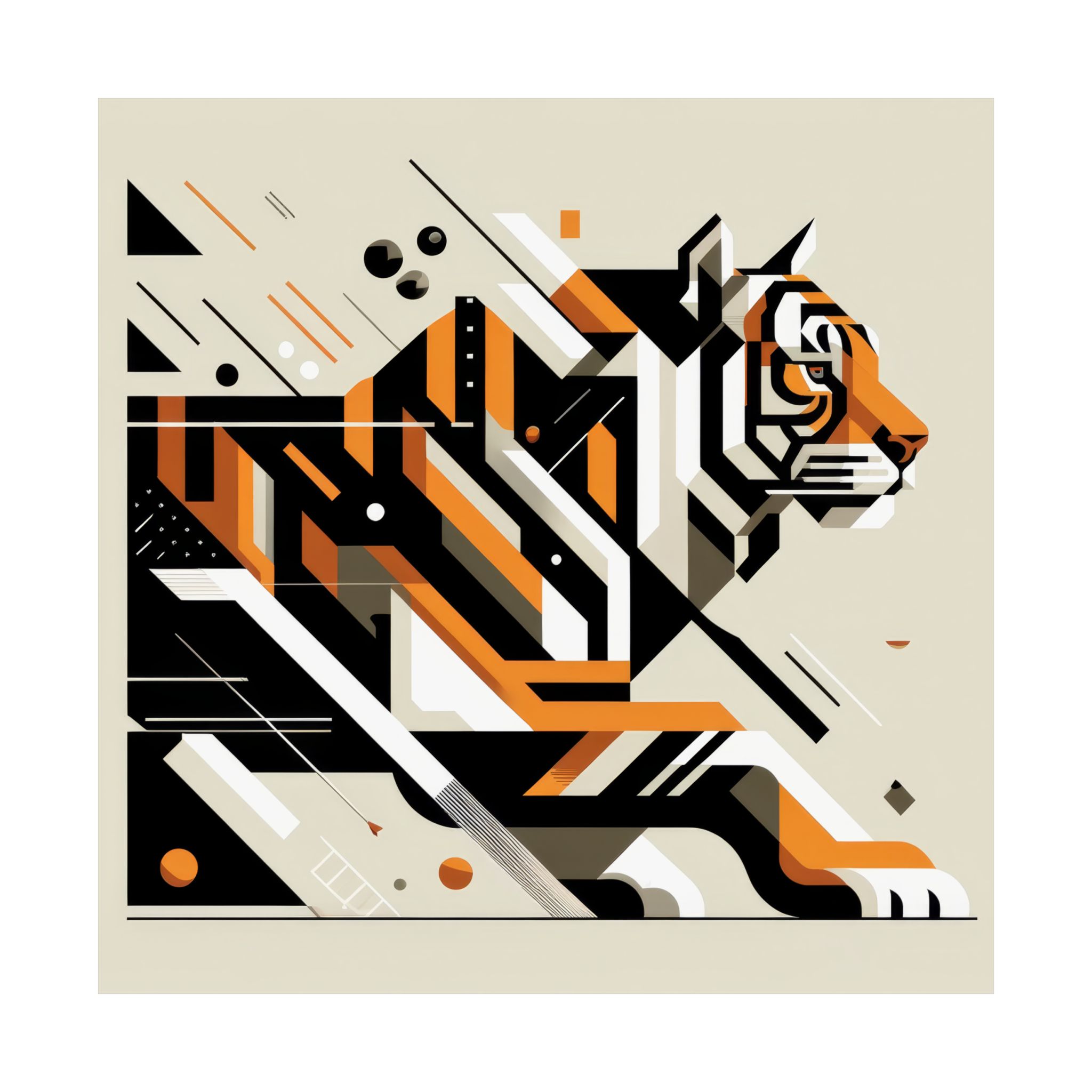 Tiger Big Cat Abstract Minimalist Wall Art Poster with a geometric cubist Bauhaus design. This poster gives off a modern and artistic vibe, perfect for adding a pop of color to any room. Ideal for art lovers and those looking to enhance their home decor. Relevant for birthdays, housewarmings, and art enthusiasts. Product features –…