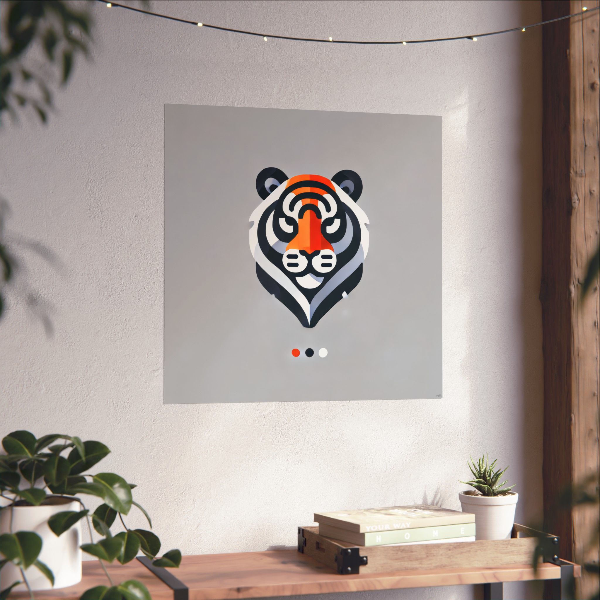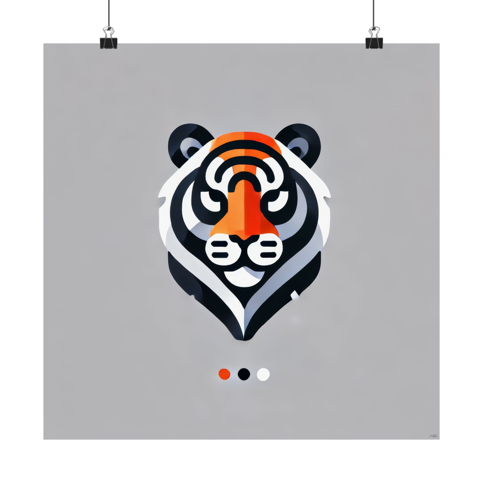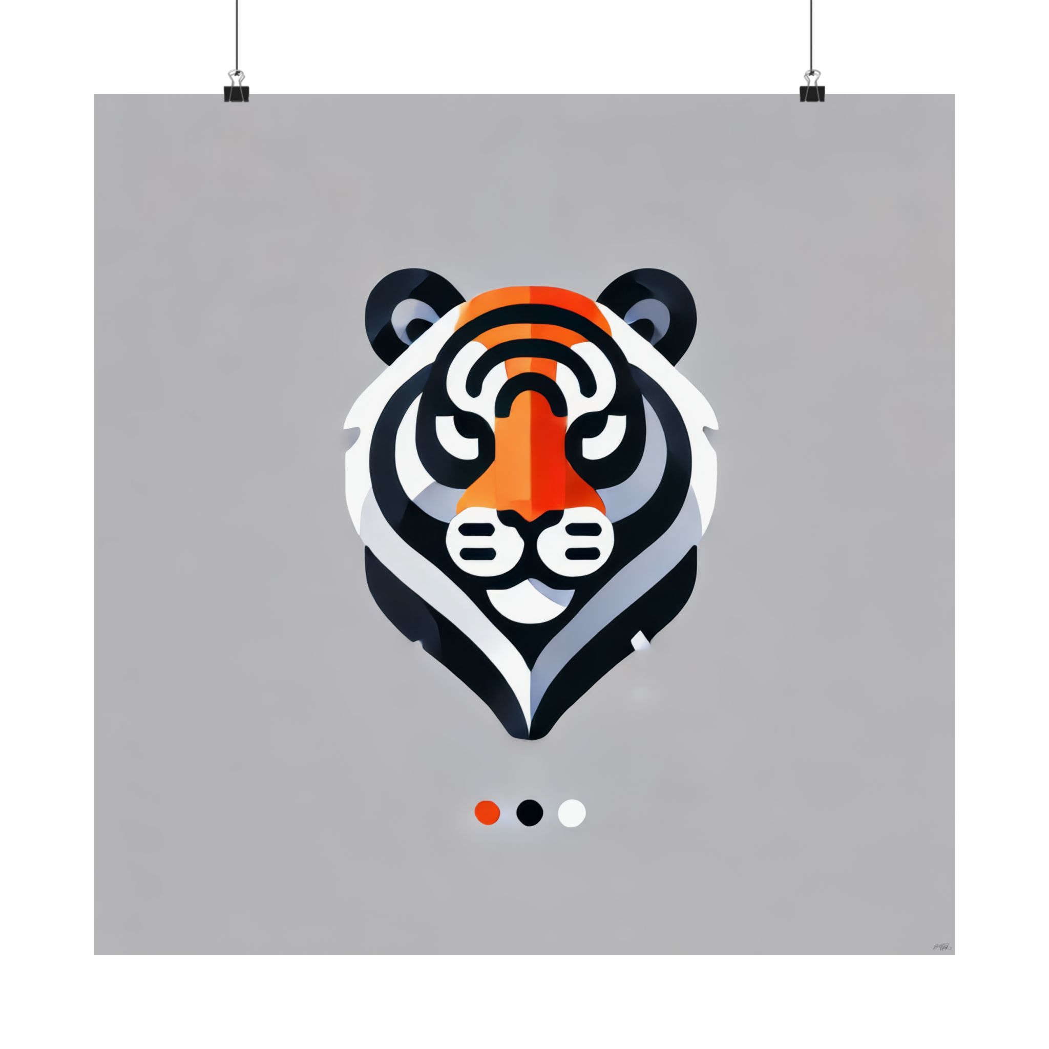 A matte vertical poster that brings bold, modern wildlife art into quiet corners of the home. Clean geometric lines and a focused palette of charcoal, warm orange, and soft white form a stylized tiger head that reads both playful and refined. The matte surface soaks up light, giving the print a velvety, gallery-like presence on living room walls, bedroom nooks, or office spaces. Printed on archival museum-grade paper using giclée techniques, the colors stay vivid and true while the paper resists yellowing over time. Available in many sizes to suit compact walls or statement displays, this poster arrives ready for indoor framing or simple clip-hanging to complement minimalist, Scandinavian, or mid-century modern interiors.