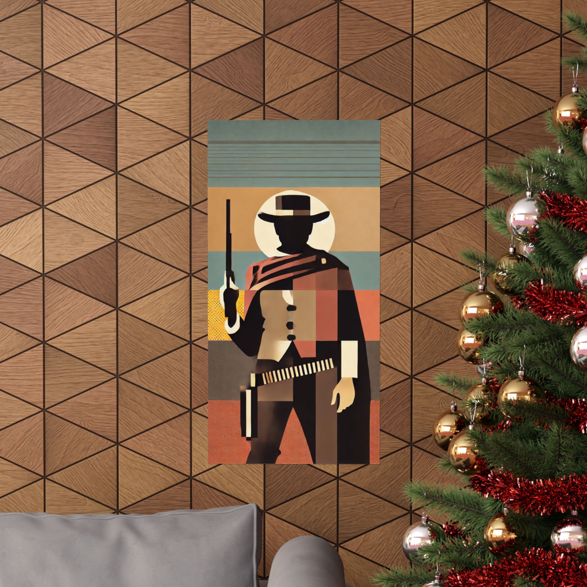 Capture the essence of the Wild West with this Clint Eastwood Cowboy Gunslinger abstract minimalist cubism poster. Perfect for fans of classic western films or those looking to add a touch of vintage cool to their space. Ideal for movie buffs, cowboys, and art enthusiasts. Great for Western-themed parties, movie nights, or as a unique…