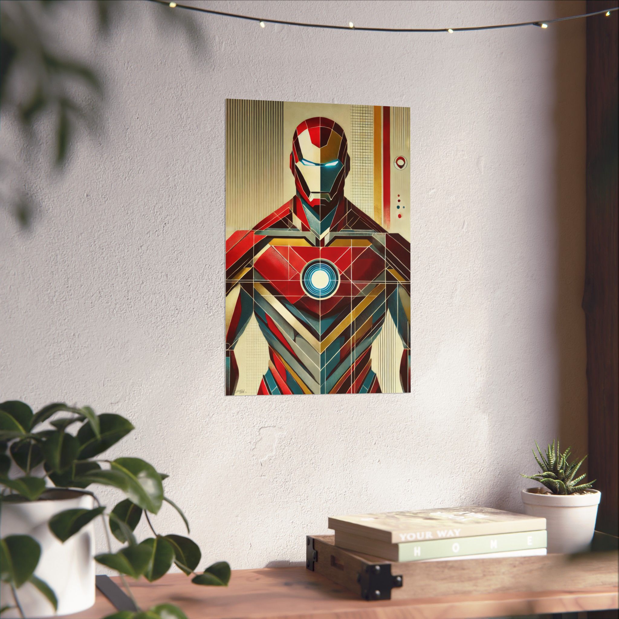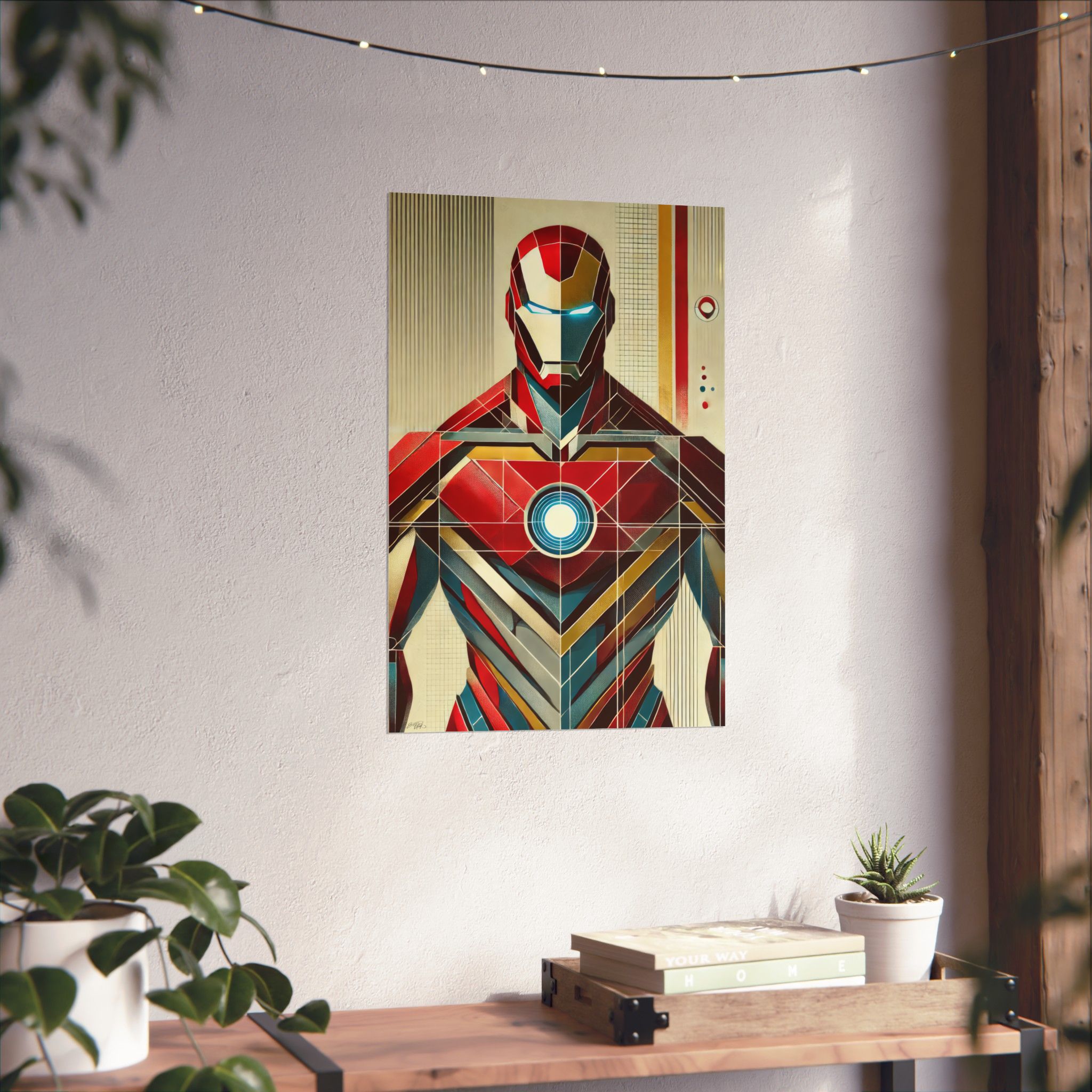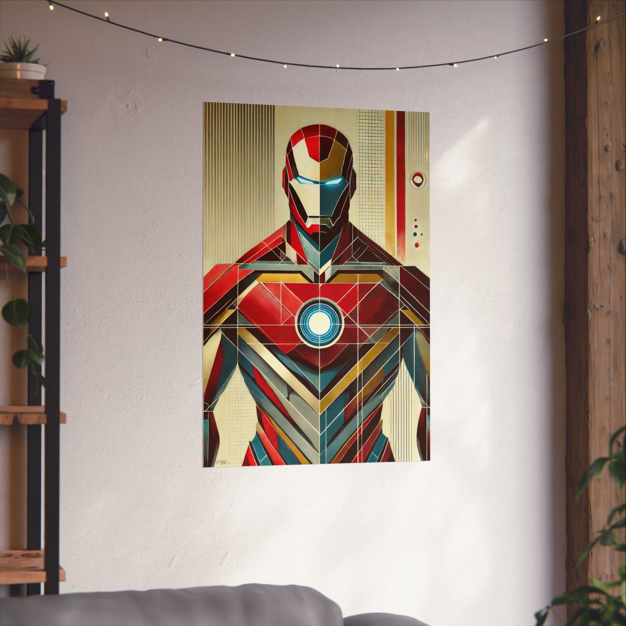 Iron Man Tony Stark Abstract Minimalist Wall Art Poster with a geometric Bauhaus Cubism design. This poster gives a modern and edgy vibe, perfect for Marvel fans or lovers of abstract art. Ideal for decorating a home office, man cave, or entertainment room. Great for birthdays, holidays, or any special occasion.