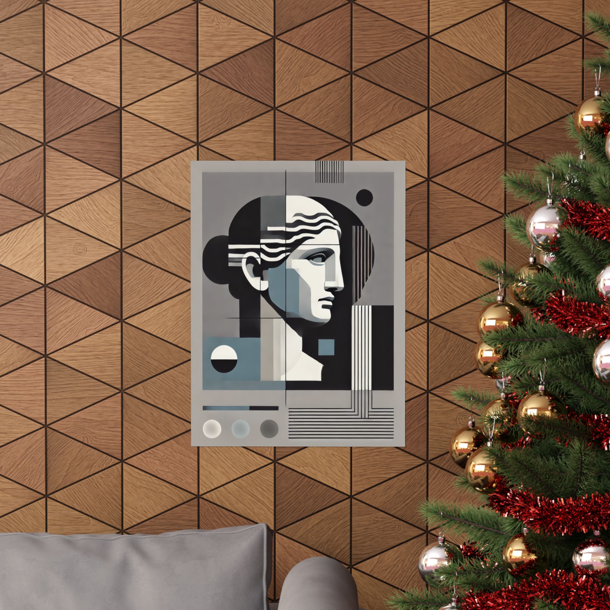 The Athena Greek Sculpture watcher Abstract Minimalist Wall Art Poster Cubist Bauhaus Geometric gives off a sophisticated and artistic vibe, perfect for art lovers and enthusiasts. This poster is relevant for home decor, art galleries, and interior design enthusiasts, suitable for Greek mythology enthusiasts and fans of abstract and minimalist art. Ideal for decorating living rooms, bedrooms, and home offices. Perfect for holidays, birthdays, and housewarmings.