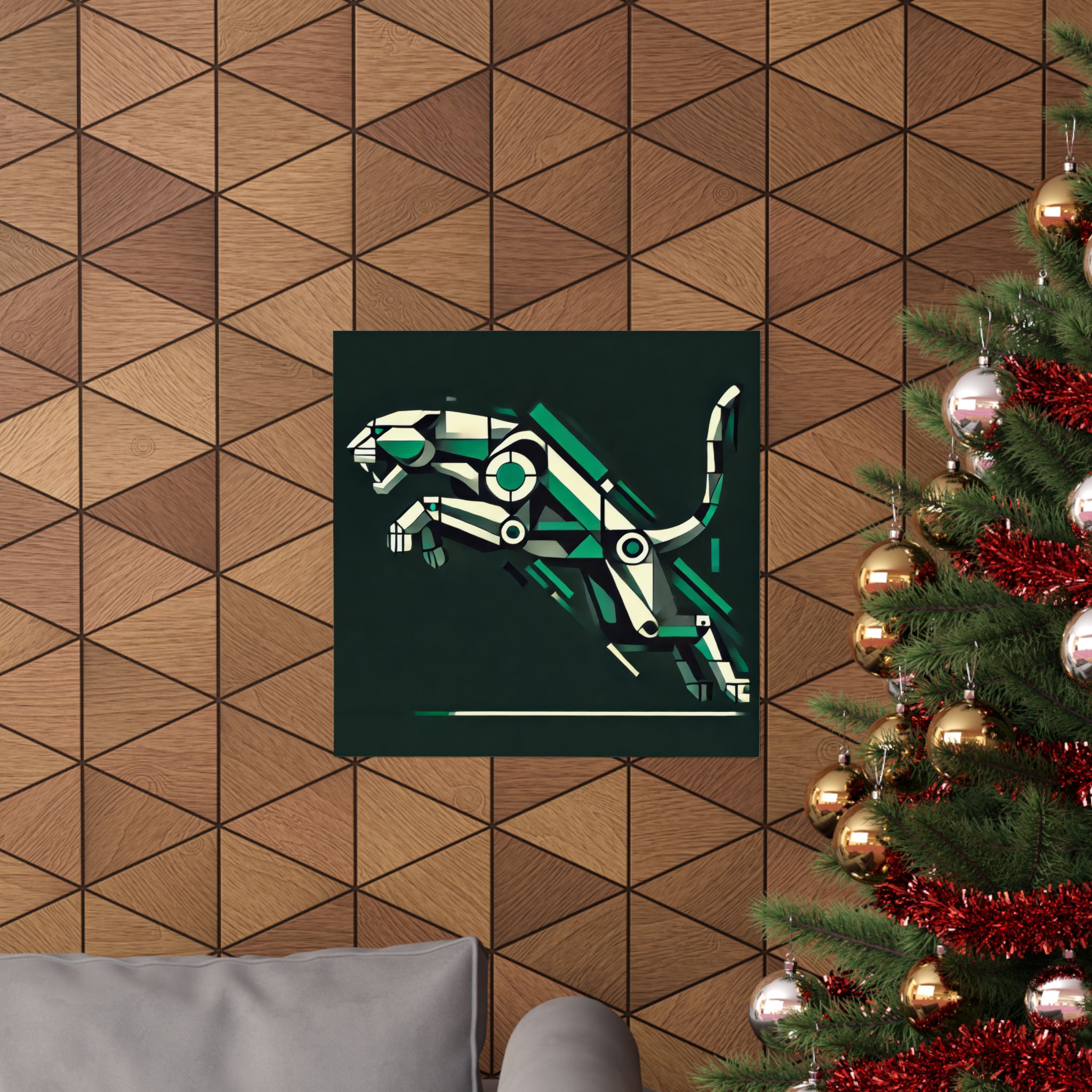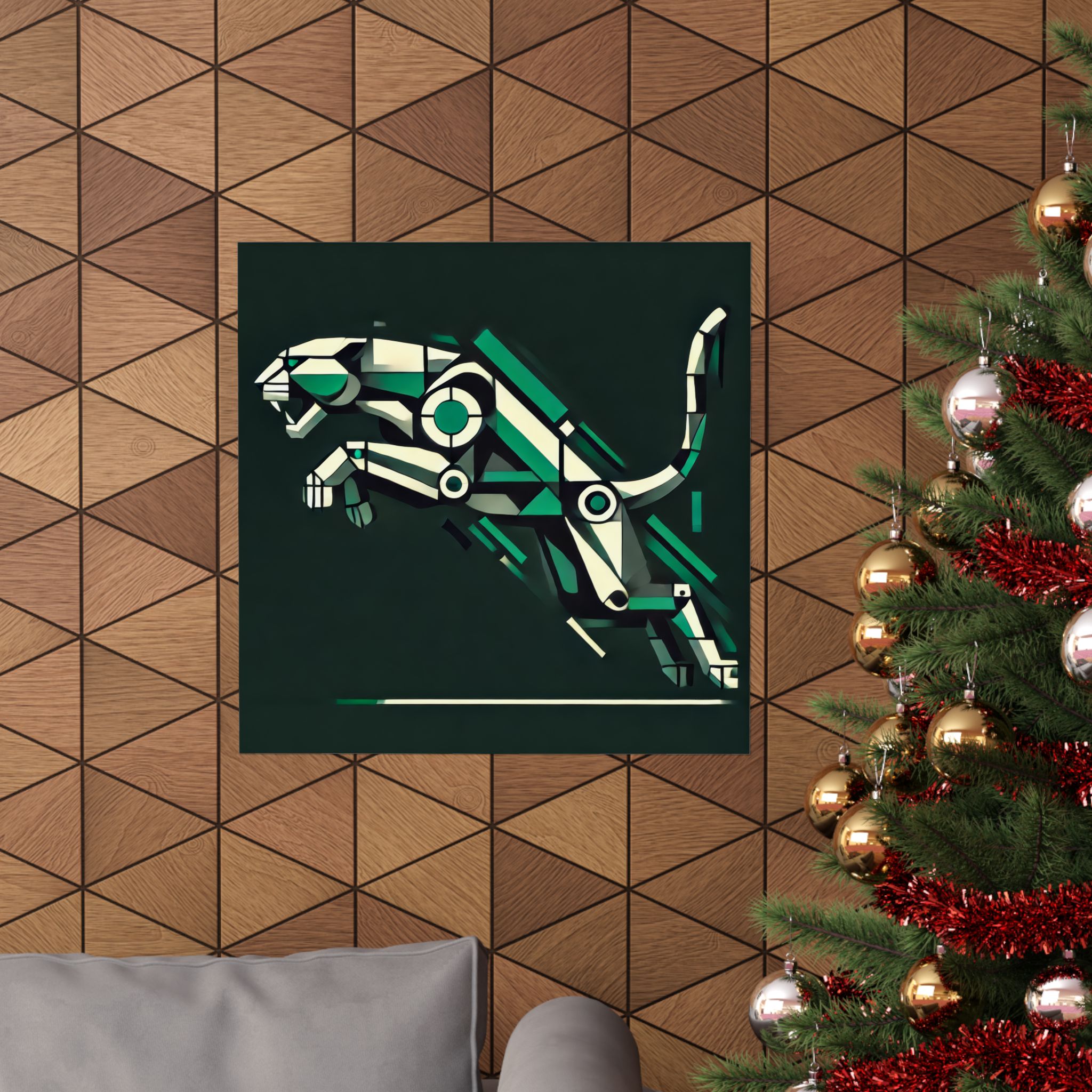 Abstract, minimalist, and vibrant Jaguar Car Logo reimagined wall art poster that adds a touch of Bauhaus Cubism to any space. Perfect for car enthusiasts, art lovers, and those looking to add a modern flair to their home decor. Ideal for automotive-themed rooms, offices, and man caves. Great gift for birthdays, Father’s Day, Christmas, and housewarming parties.